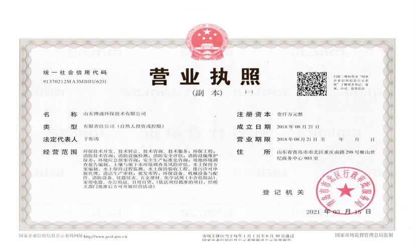 山東博通環(huán)保技術(shù)有限公司是一家專業(yè)從事環(huán)保、安全、消防的多元化技術(shù)服務(wù)公司,公司致力于打造專業(yè)的技術(shù)服務(wù)團隊,立足青島,輻射山東,服務(wù)范圍涵蓋:環(huán)保技術(shù)開發(fā)、技術(shù)轉(zhuǎn)讓、技術(shù)咨詢、技術(shù)服務(wù);環(huán)保工程;消防技術(shù)咨詢;消防設(shè)施檢測;消防安全評估;消防設(shè)施維護保養(yǎng);環(huán)境應(yīng)急預案咨詢;安全生產(chǎn)標準化咨詢;場地環(huán)境調(diào)查報告編制,土壤與地下水環(huán)境調(diào)查及風險評估,水土保持方案編制,水土保持過程監(jiān)測,水土保持驗收工程,排污許可申報代理,清潔生產(chǎn)審核;...